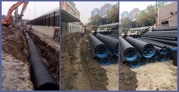 產品用途:市政地下排水排污、雨水收集輸送、通風、電力電纜光纜的保護管、工業排污、生活小區排水排污等。