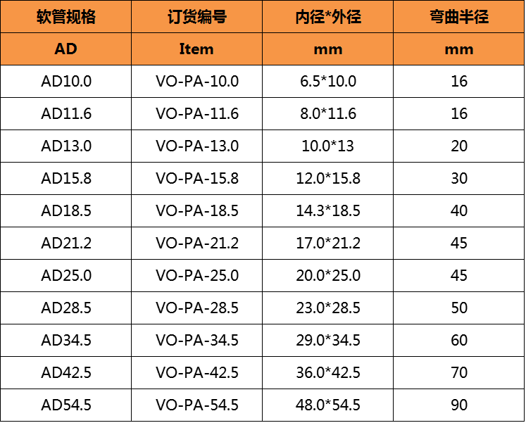pa6塑料波紋管規格: